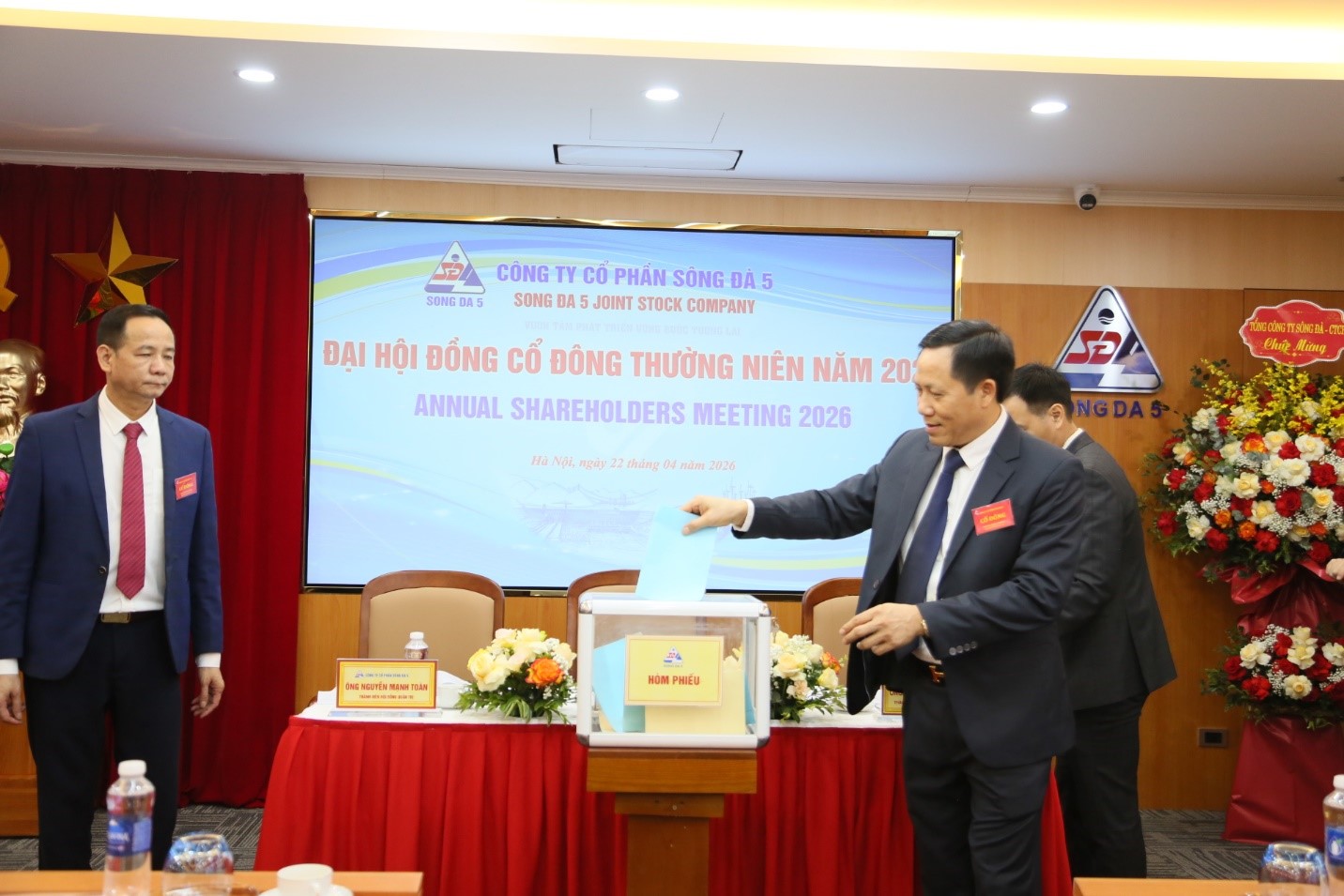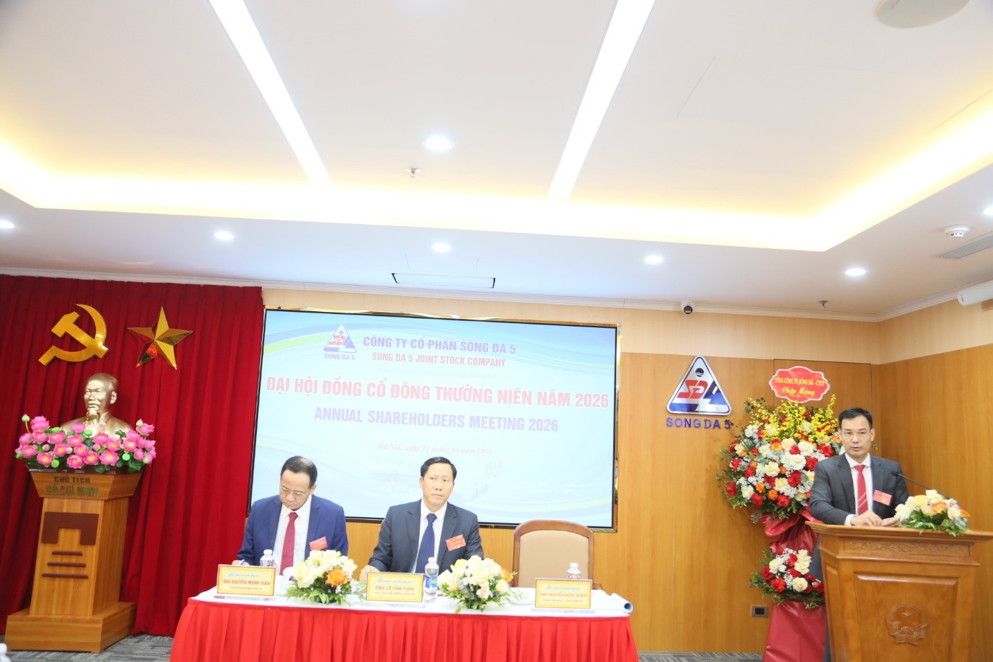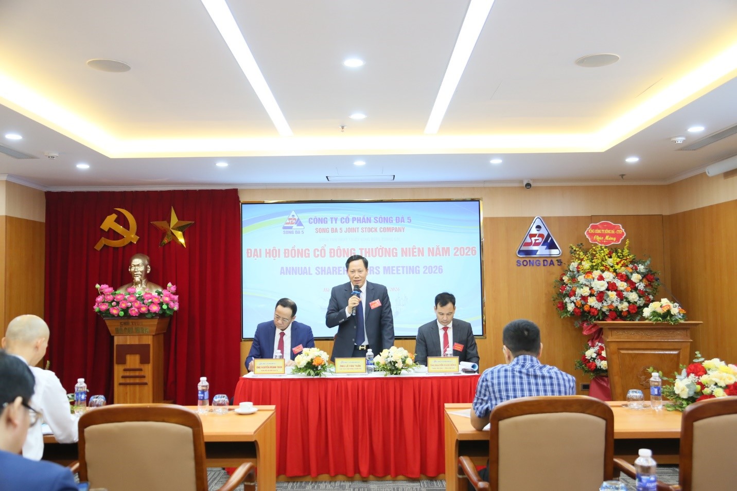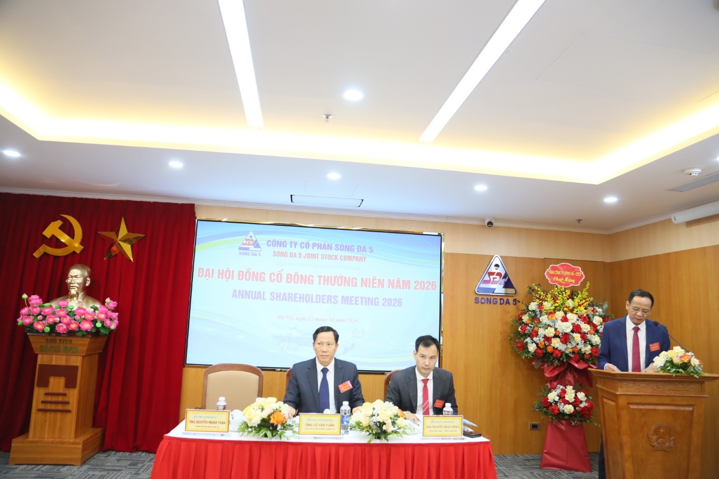Ngày 22/4/2026, tại Hà Nội, Công ty Cổ phần Sông Đà 5 (Sông Đà 5) đã tổ chức thành công Đại hội đồng cổ đông thường niên năm 2026. Tham dự Đại hội có Đại diện của Tổng công ty Sông Đà - CTCP, Cổ đông lớn của Công ty cổ phần Sông Đà 5, cùng toàn thể cổ đông sở hữu cổ phần của Sông Đà 5. Về phía Sông Đà 5, có sự hiện diện của ông Lê Văn Tuấn - Chủ tịch HĐQT; ông Nguyễn Ngọc Đông - Thành viên HĐQT, Tổng Giám đốc; Các thành viên HĐQT, các Thành viên Ban kiểm soát và toàn thể Ban lãnh đạo Sông Đà 5.